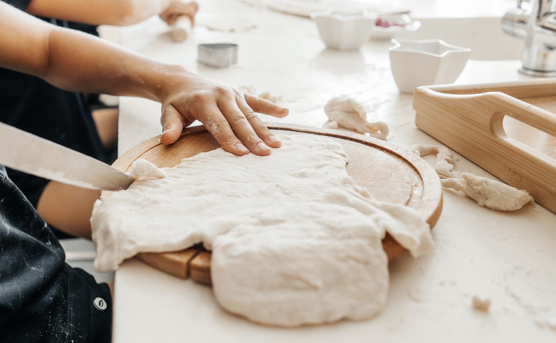 Tüm çocuklar önlüklerini giyer ve ellerini yıkar. Daha sonra mutfakta bir araya gelerek etkinliğin amacı anlatılır. Un, maya, pudra şekeri, süt ve yağı yoğurun ve homojen bir hamur elde edin. Hamurun üzerini örterek bir saat mayalanmaya bırakın. Mayalanan hamuru 8 eşit parçaya bölün ve her çocuğa bir parça verin.