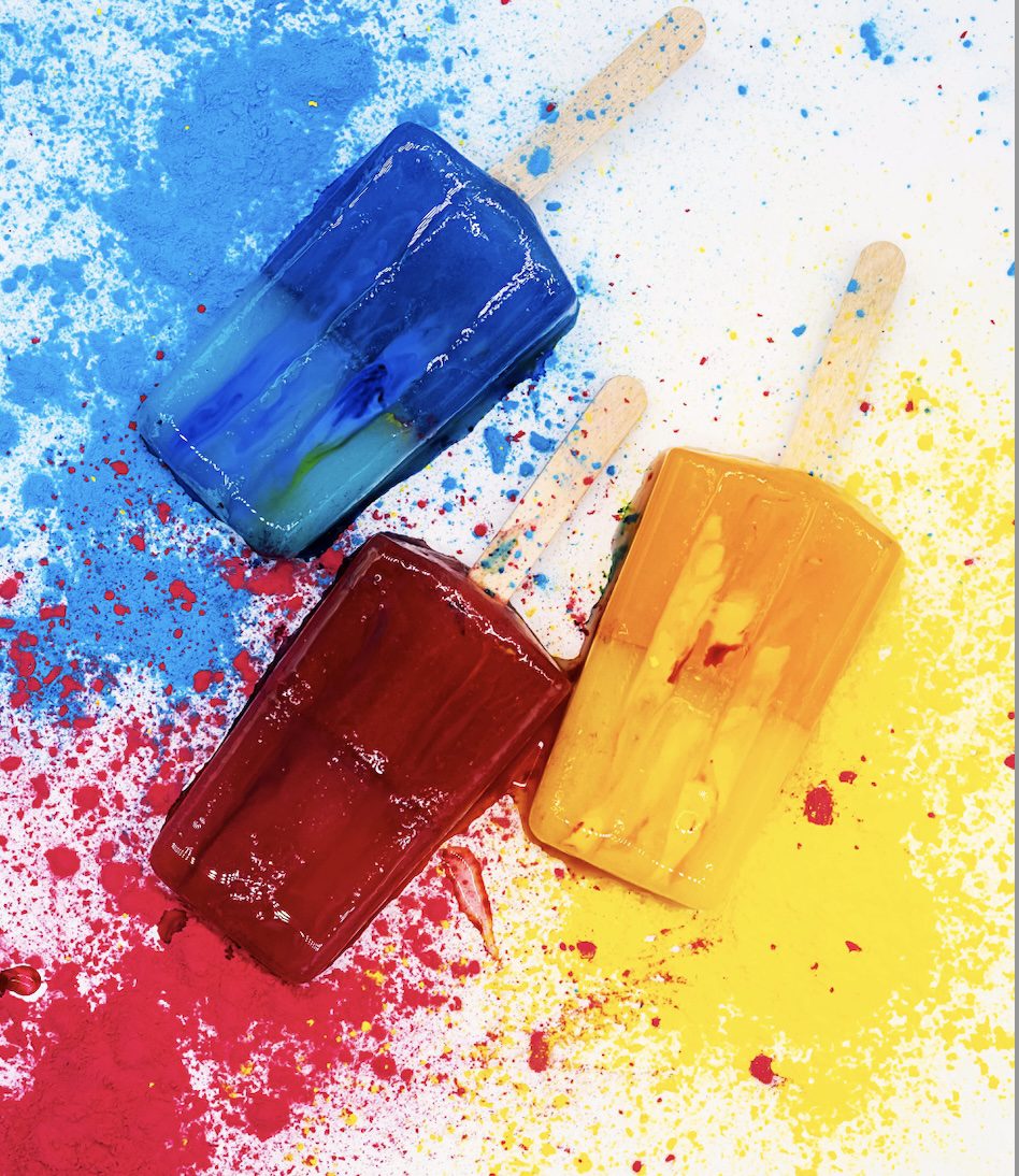 Donmuş mavi buz küpleri çocuklara verilir. Çocuklar buzları beyaz A3 kâğıt üzerinde gezdirerek kâğıdı boyar. Buz eridikçe rengin yayılması gözlemlenir. Çalışmalar kurumaya bırakılır.